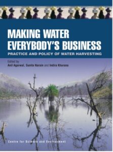 Making Water Everyone’s Business fue publicado por primera vez en 2001 por el Centre for Science and Environment (CSE) y ahora es compartido por The Underground Water Project para asegurar que llegue a una audiencia global. El volumen complementa la información proporcionada en el cuarto informe ciudadano sobre el estado del medio ambiente en la India, ‘Sabiduría moribunda’. Dying Wisdom documentó el auge, declive y resurgimiento de los sistemas tradicionales de captación de agua de la India a lo largo de los años, mientras que este volumen recopila estudios de caso, análisis de políticas y experiencias de toda la India y del mundo para demostrar cómo la captación de agua de lluvia puede establecerse tanto como una responsabilidad local como a través de la política pública.